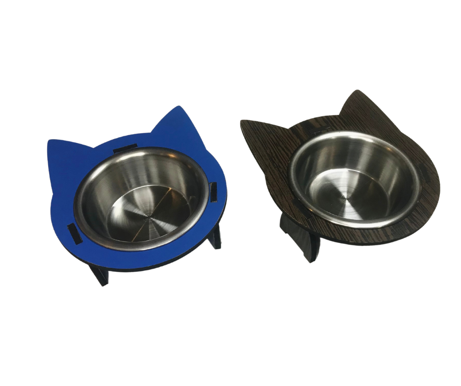Ahşap Kedi Desenli Tekli Mama Ve Su Kabı